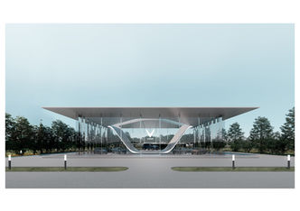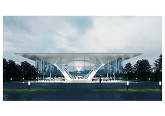 The showroom includes a car display space of 30m x20m x 8m, in addition to an auxiliary block (expected) behind. The surrounding campus is wide open, less affected by the outside. The structure of the showroom space emphasizes the void, with transparent layers permeating the surrounding landscape. The most special highlight is the thin, light aluminum roof system with a large span, partially cut and converted from the ceiling plane to the wall system to bear vertical forces, combined with the roof support with the mirror stainless steel column. glass walls.