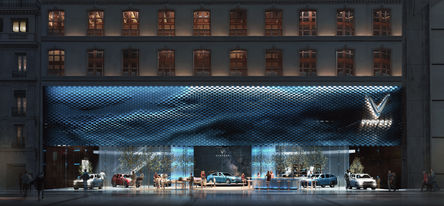 The impressive first attraction to appeal to the visitors’ vision to the indoor and the car design is the double skin façade made by a full curtain glass wall, and a dynamic metal mesh called “wind fast” to filter the light and vision. The Wind Fast is an art installation that expresses the natural fresh air flow caressing the car in movement, with an infinity of visuals generating natural feelings from morning to nighttime.
