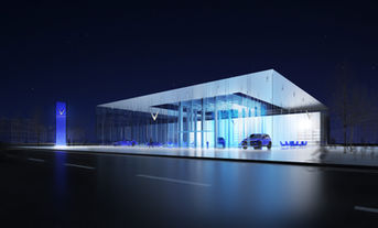 Steel, glass and aluminium are the chosen main materials, leaving a futuristic and industrial impression. VINFAST’s future blue signature color is cleverly included. The lighting is designed to highlight the blue heart of the showroom. The symmetrical design allows the accesses to be flexibly arranged to adapt to various contexts